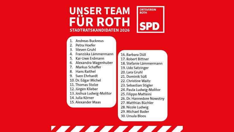 Jetzt hat auch die Kreisstadt-SPD die Liste ihrer Kandidierenden für die Stadtratswahl am 8. März 2026 veröffentlicht. Der Wahlvorschlag …